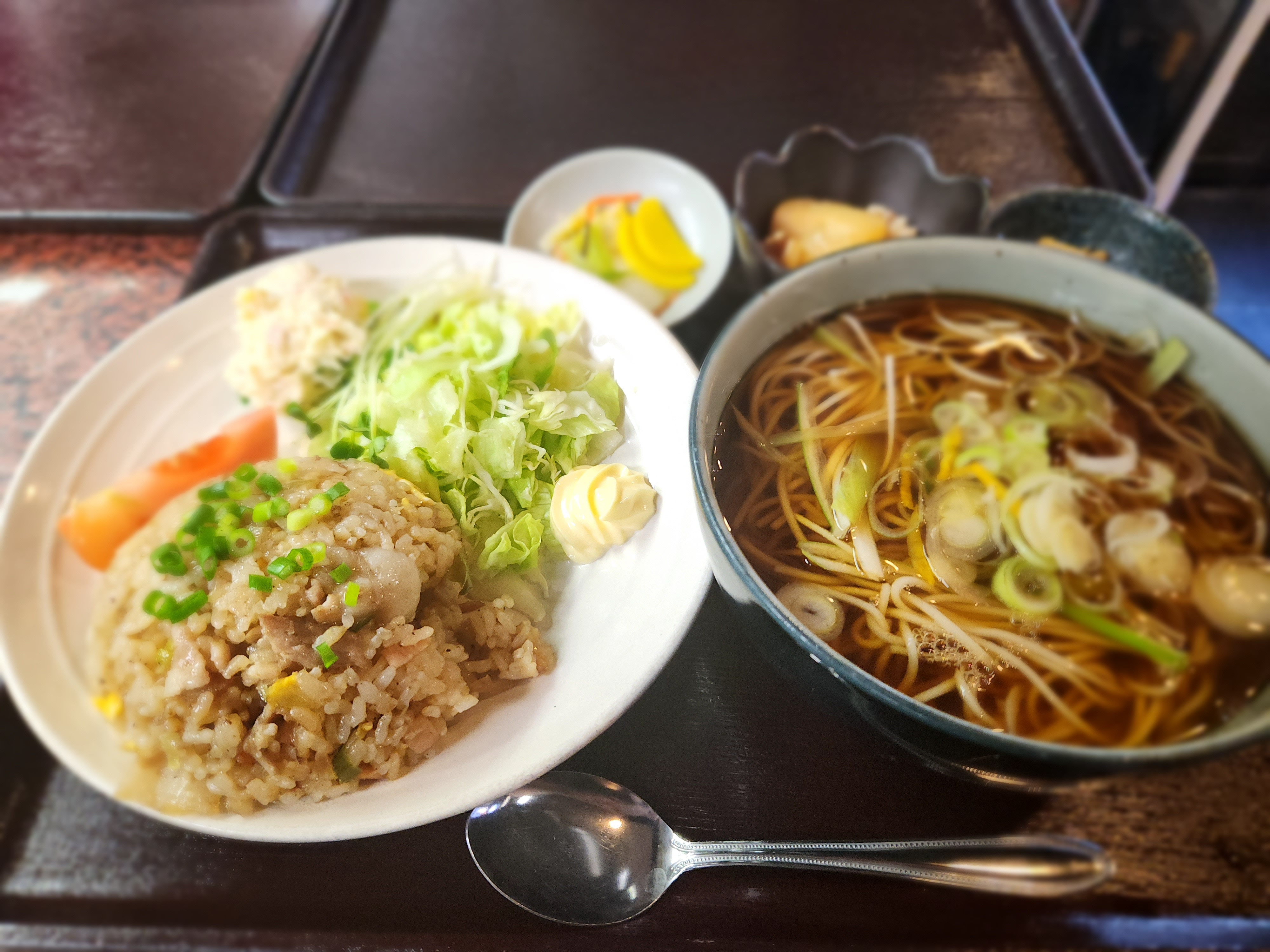 日替わり 自家製!!昔懐かしい味!! 野菜たっぷり具だくさん チャーハン&更科蕎麦付き1100円
